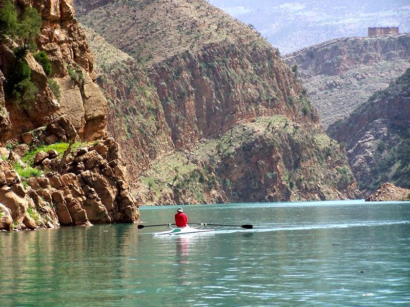 Le lac de Bin el Ouidane un site exceptionnel au cœur du Maroc traditionnel alliant parfaitement l’éco-tourisme aux traditions berbères,entre l’oued El Abid et l’assif Ahanesal, au cœur de l’Atlas, Bin el Ouidane signifie « entre les fleuves ». Enchâssé entre les sommets du Haut-Atlas, le Tazerkount (à 1730 mètres d’altitude), le R’Nin (à 2411 mètres) et le Tassemit (à 2248 mètres), tous trois au Nord, ainsi que le Chito (à 2662 mètres) et l’Azouti M’Goum (culminant à 3071 mètres), au Sud, le lac de Bin el Ouidane, juché à 810 mètres d’altitude, s’étend sur plus de 37 Km2.